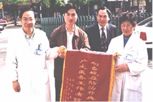 2003年4月26日,本公司與共青團(tuán)南京市委、南京市青年聯(lián)合會組織部分青年代表帶著全市青年的心愿,向廣大奮斗在抗非典一線的醫(yī)務(wù)工作者送去錦旗和慰問品,表達(dá)對奉獻(xiàn)者真摯的祝福。在江蘇省人民醫(yī)院,當(dāng)院領(lǐng)導(dǎo)和醫(yī)護(hù)人員從團(tuán)市委書記許宏和圣和藥業(yè)董事長王勇手中接過錦旗和慰問品時深為感動。他們表示有全市人民的大力支持,一定能戰(zhàn)勝“非典”惡魔,奪取抗非典戰(zhàn)斗的勝利。許宏書記和王勇董事長對奮戰(zhàn)在抗非典一線的醫(yī)務(wù)人員所表現(xiàn)出的崇高精神表示欽佩,對他們所做的工作表示感謝,并囑咐他們一定要保重身體。