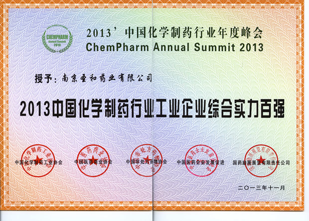 2013中國化學(xué)制藥行業(yè)工業(yè)企業(yè)綜合實力百強