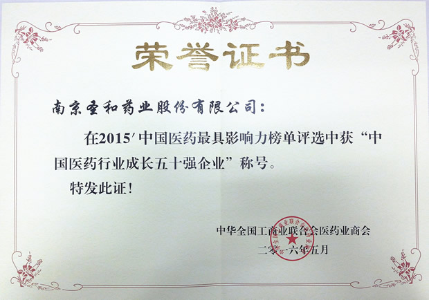 2015年度中國醫(yī)藥行業(yè)成長50強(qiáng)企業(yè)