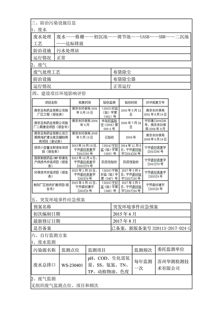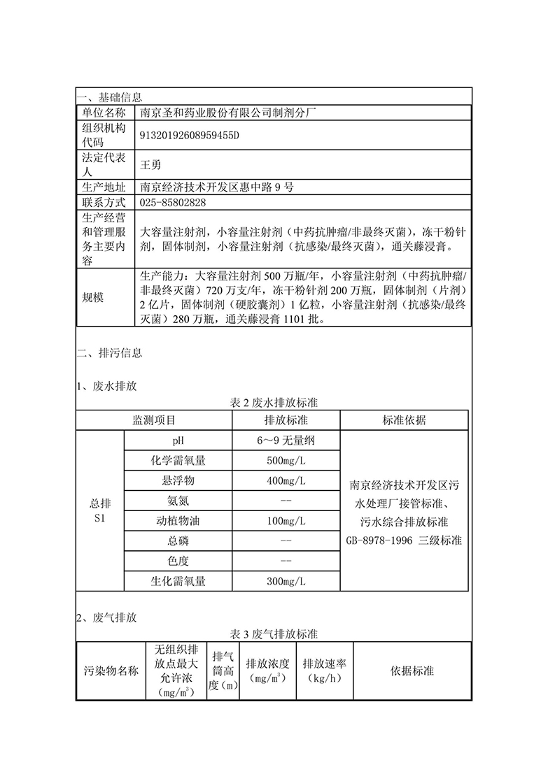 南京圣和藥業(yè)股份有限公司制劑分廠(chǎng)環(huán)保信息公開(kāi)
