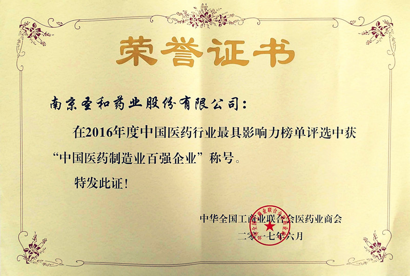 2016年度中國(guó)醫(yī)藥制造業(yè)百?gòu)?qiáng)企業(yè)