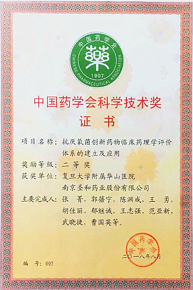 中國藥學(xué)會科學(xué)技術(shù)獎二等獎