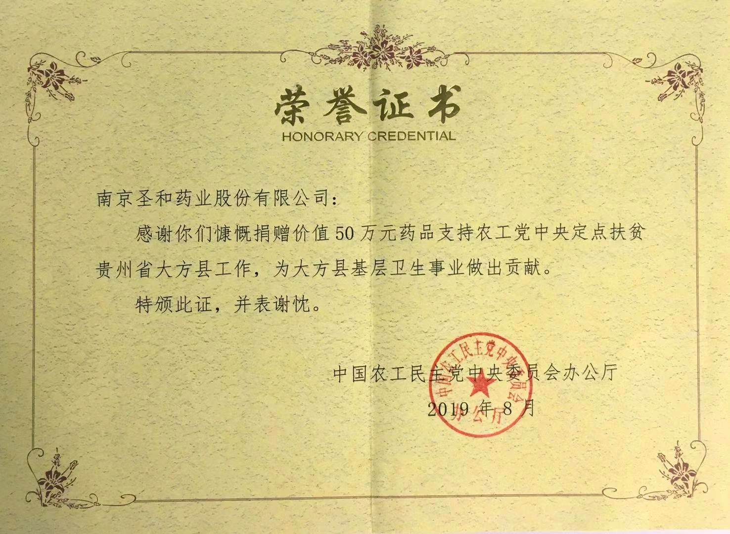捐贈榮譽證書