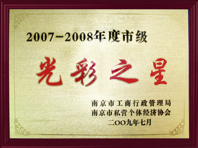 2009年8月3日下午,南京市私營個體協(xié)會在華山飯店召開常務理事會暨表彰大會,市私營個體協(xié)會主席、常務理事及會員代表200余人參加了會議,南京市工商行政管理局單兆彭副局長,共青團南京市委副書記王偉出席了會議。會上,我公司被授予“青年文明號”及“光彩之星”等獎牌。