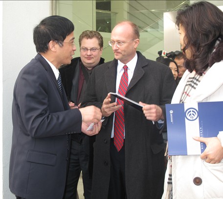 2009年12月1日下午,參加第五屆中歐工商峰會(huì)的部分代表一行十余人來(lái)我公司新港基地參觀考察,副總經(jīng)理戚良猛、張倉(cāng)接待了來(lái)自中歐工商界的客人。