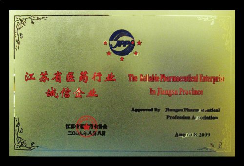近年來,制藥企業(yè)誠信問題成為社會(huì)關(guān)注的焦點(diǎn)。為加強(qiáng)全省醫(yī)藥行業(yè)誠信體系建設(shè),認(rèn)真貫徹國務(wù)院有關(guān)文件精神,落實(shí)《江蘇省醫(yī)藥行業(yè)行規(guī)行約》,江蘇省醫(yī)藥行業(yè)協(xié)會(huì)在全省開展誠信企業(yè)創(chuàng)建活動(dòng)。評選活動(dòng)依據(jù)《江蘇省醫(yī)藥行業(yè)誠信企業(yè)評選辦法》,在企業(yè)自評申報(bào)的基礎(chǔ)上,經(jīng)過嚴(yán)格的審定、評選和公示,共產(chǎn)生38家誠信企業(yè),我公司是其中之一。
