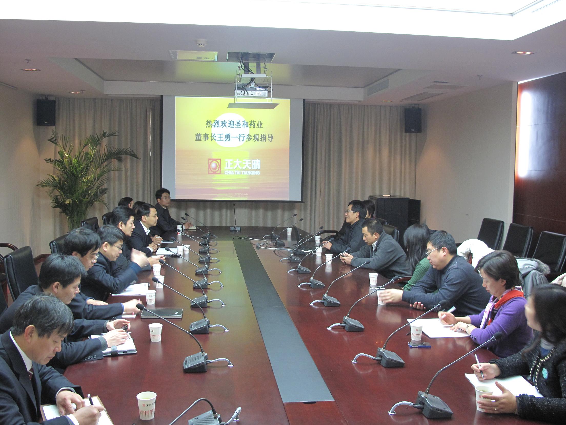 正大天晴是國內最大的肝健康藥物研發(fā)和生產基地之一,主要產品治療領域涉及肝病、腫瘤、糖尿病、呼吸、心腦血管、抗感染、消化、神經等多個疾病領域,特別是在肝病藥物研究領域具備獨特的優(yōu)勢。正大天晴藥業(yè)目前擁有5家全資子公司和4家控股子公司,在連云港建有三個生產基地,總占地面積800余畝,其中,位于海州開發(fā)區(qū)的小容量注射劑獲得了全國首張新版GMP證書,口服固體制劑獲得了江蘇省首張新版GMP證書,標志著正大天晴藥品生產質量和管理水平走在了全國醫(yī)藥行業(yè)前列。王善春總工程師等正大天晴領導熱情接待了圣和代表團,并帶領大家參觀了正大天晴的榮譽室和海州制劑新區(qū)小容量注射劑及成品車間,先進的設備、整潔的廠房、規(guī)范的管理,以及天晴人對質量和品質的不懈追求給圣和人留下了深刻的印象。孫鍵總裁就企業(yè)發(fā)展歷程、科研、生產等方面的情況和今后發(fā)展思路等問題開誠布公地和王勇董事長做了詳細交流,孫總說,正大天晴近年來依托科技創(chuàng)新,專注于肝健康領域,走出了一條特色之路,今后還要在更廣闊的領域爭取發(fā)展優(yōu)勢。