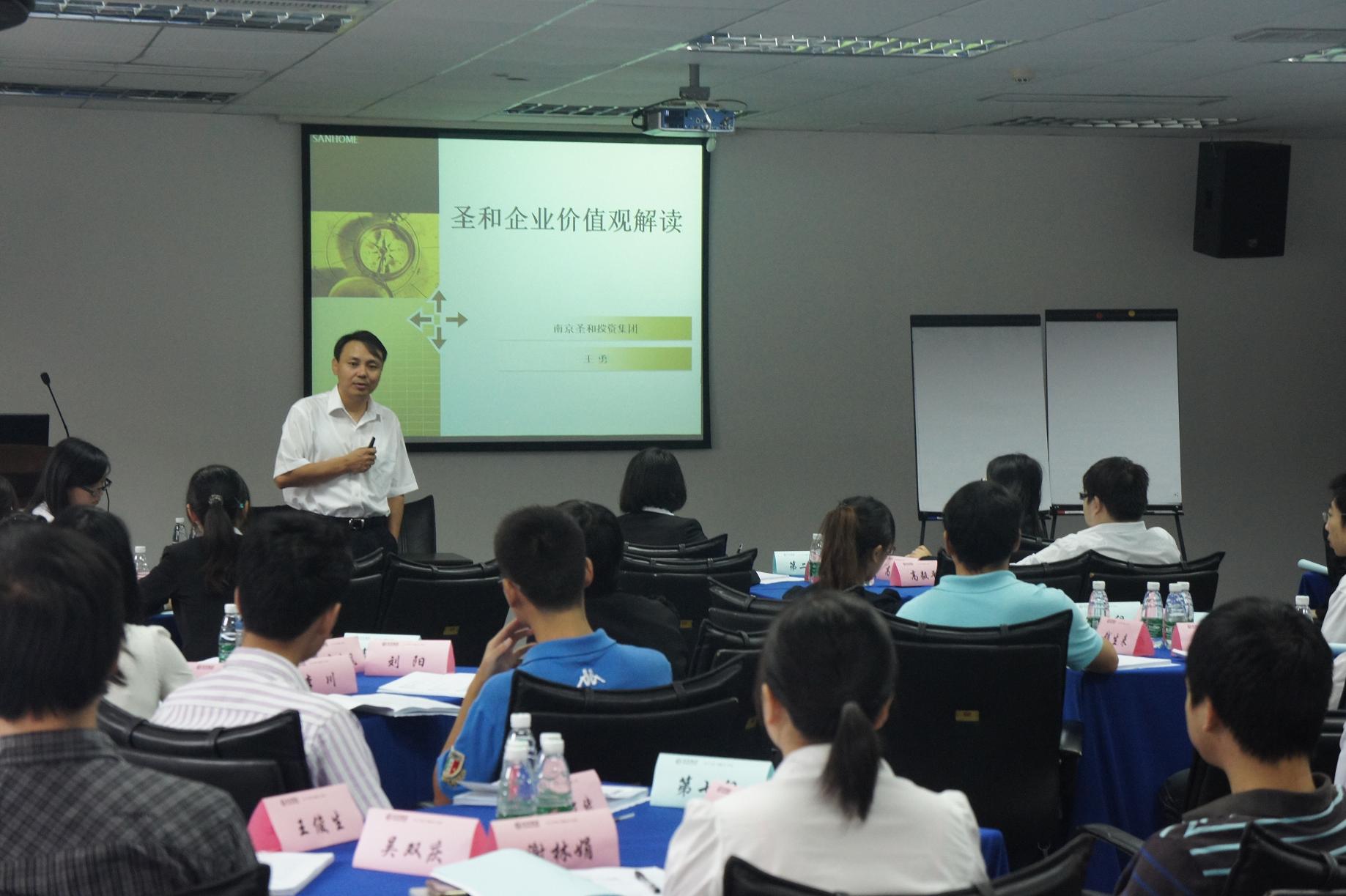 培訓(xùn)課上,王勇董事長首先跟學(xué)員詳細(xì)解讀了圣和的企業(yè)文化,并與學(xué)員互動交流,氣氛十分熱烈。隨后,與大家一同分享了一段發(fā)人深省的視頻和故事,殷切希望新員工在今后的工作生活中,秉承圣和核心價值觀,做到誠信正直、積極主動、擁抱變化,擔(dān)負(fù)起“讓更多人享受健康的快樂”這一使命,在追求卓越的道路上與圣和攜手前行,共同發(fā)展進(jìn)步。王勇董事長精彩的授課與分享,讓所有學(xué)員內(nèi)心都深受啟發(fā)與鼓舞,對未來的工作和生活都充滿了激情和信心,更以能加入圣和大家庭為榮,愿為“打造百年圣和,成就卓越常青藤企業(yè)”這一圣和戰(zhàn)略目標(biāo)而奮斗。