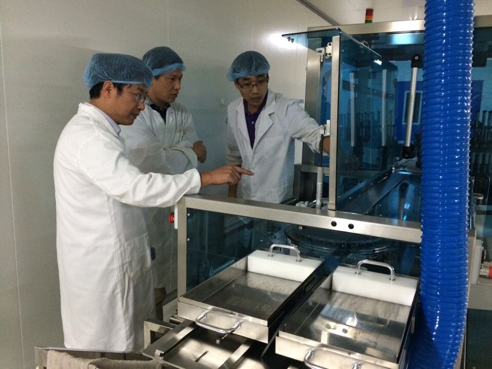 倪處長重點察看了二車間粉針產(chǎn)品注射用奧硝唑的出箱、燈檢、貼簽等生產(chǎn)流程。隨后,還參觀了輸液車間的包裝、燈檢、滅菌等流程和消癌平生產(chǎn)車間七車間外圍,包括BVD燈檢機、貼簽機等。李放總監(jiān)隨同解說,并向倪處長介紹了燈檢機的購買流程、燈檢原理及燈檢精確度。