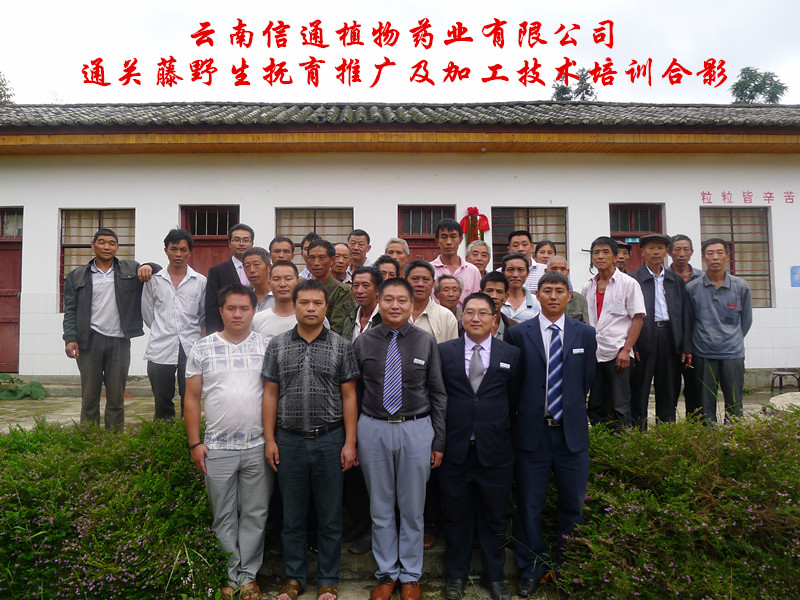 本網(wǎng)訊 8月25日,云南信通植物藥業(yè)有限公司生產(chǎn)技術部應斗咀通關藤野生撫育基地負責人及當?shù)剞r(nóng)戶邀請,組織人員至云南文山州馬關縣進行了通關藤野生撫育推廣及加工技術培訓。培訓會議得到了當?shù)卣块T和農(nóng)戶的積極配合和大力支持,馬關縣科協(xié)主席及秘書,坡腳鎮(zhèn)書記,興隆村支書、村長,各村小組組長、農(nóng)戶等近40人參加了培訓。