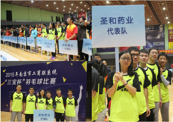 本網(wǎng)訊 為豐富全市工商聯(lián)系統(tǒng)文體生活,增進會員企業(yè)、商會間的交流互動,推進民營企業(yè)體育文化建設(shè),營造“健康、快樂、和諧、友誼”的良好氛圍,南京市工商聯(lián)于11月12日在五臺山體育館舉行了2015年南京市工商聯(lián)系統(tǒng)“三寶杯”羽毛球比賽,我司供應鏈六名隊員在小球協(xié)會會長朱麗麗的帶領(lǐng)下代表圣和藥業(yè)參加了此次比賽。